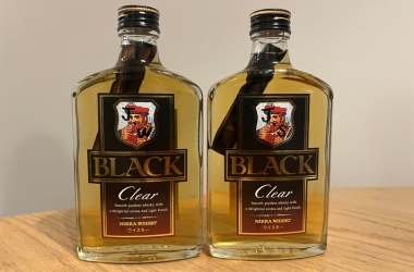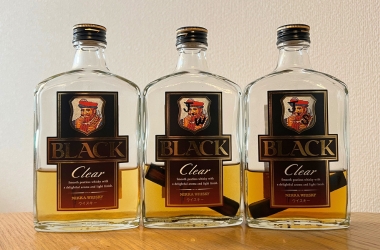 左から、通常の「ブラックニッカ クリア」「ジャパニーズウイスキー 30年」「ジャパニーズシェリー」、通常の「ジョニーウォーカー レッドラベル」「塩尻シャルドネ」「塩尻メルロー」です。
