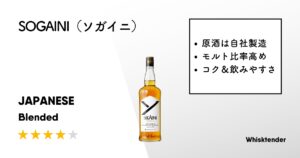 今回は、日本のブレンデッドウイスキー「SOGAINI(ソガイニ)」についてご紹介しました。